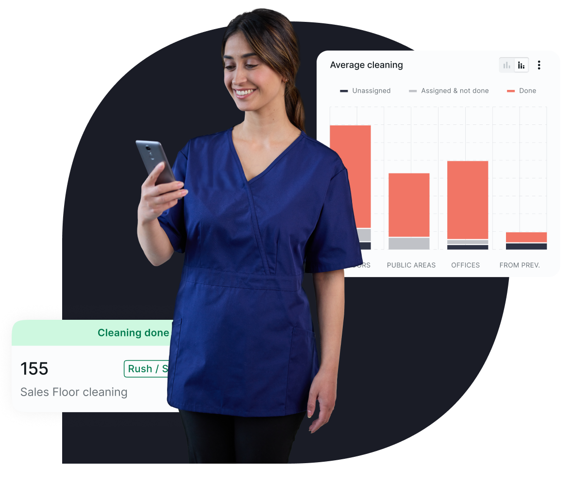 Mit der Gebäudereinigung-Software von teamkit automatisierst du die Zusammenarbeit mit externen Dienstleistern sowie die hausinterne Reinigung von Arbeitsbereichen und Verkaufsflächen.